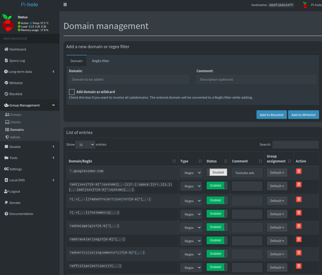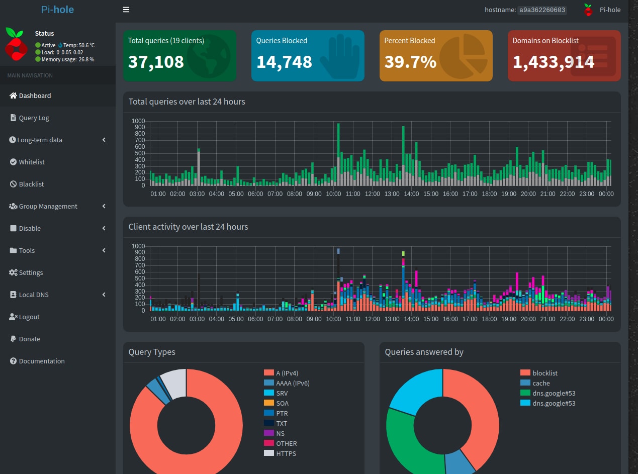 The Raspberry Pi serves as the DNS for the network thus filtering those domains via wildcards, that are associated with trackers and targeting advertisements.